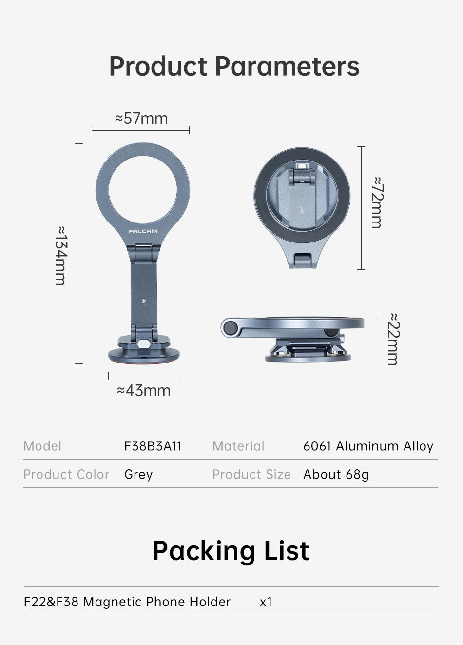 FALCAM F22&F38 MAGNETIC PHONE HOLDER F38B3A11