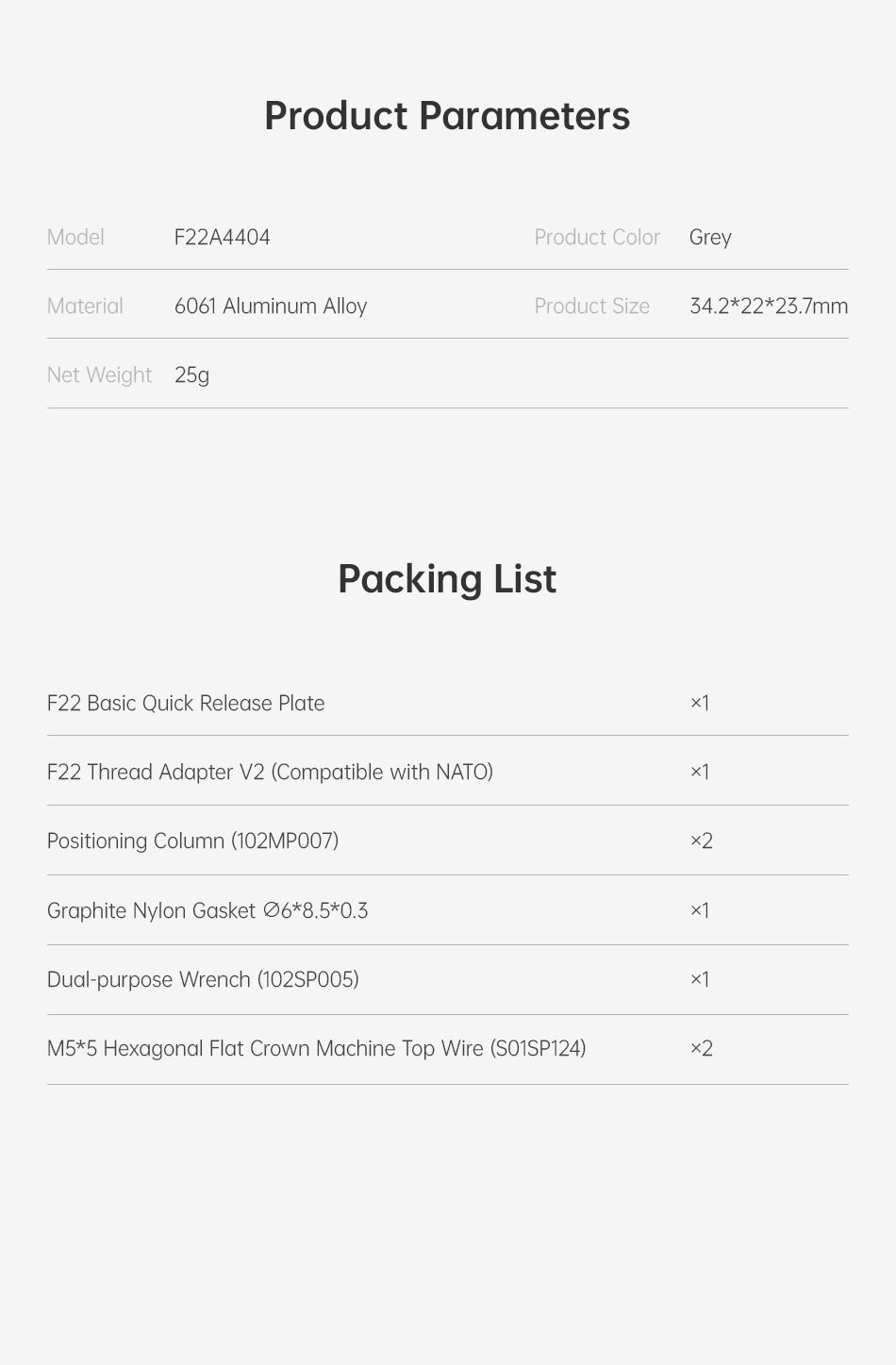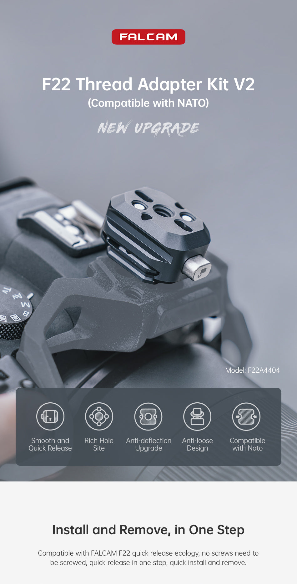 Compatible with FALCAM F22 quick release ecology, no screws need to be screwed, quick release in one step, quick install and remove.