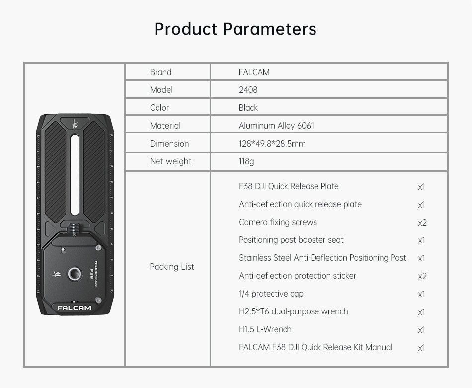 1x FALCAM F38 DJI Quick Release Kit Manual