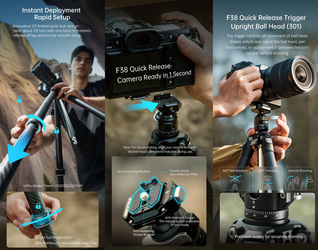 Ultra-stable yet exceptionally portable, the FALCAM TreeRoot Quick Lock Lite Tripod is built for travel, landscape, and outdoor photography. Its fast-deploy quick-lock design, carbon fibre construction, and F38 quick release system make it ideal for creators who need speed, reliability, and precision in any environment.
