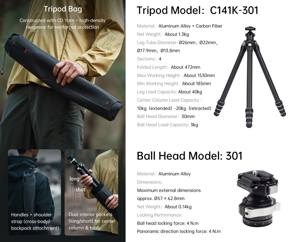 - Ultra-light carbon fibre travel tripod designed for photographers and filmmakers on the move