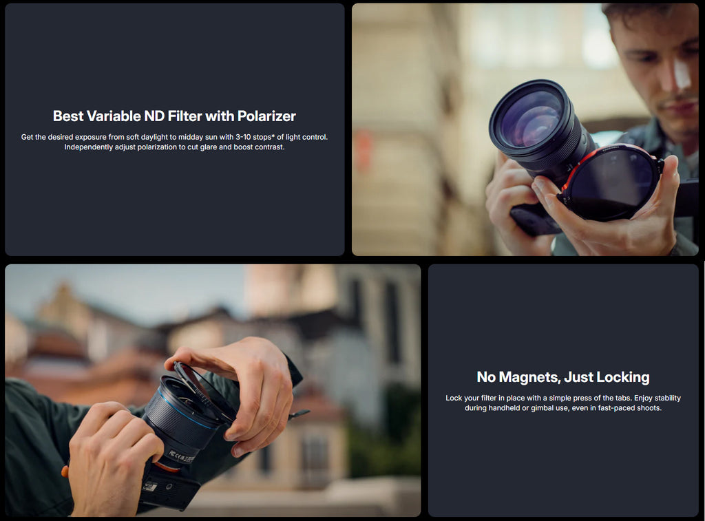 - Exposure Control + Polarization: Take full control over exposure with 3-10 stops of ND combined with the ND32 filter, perfect for bright conditions or long exposures. Adjust polarization while maintaining complete ND flexibility for ultimate shooting precision.