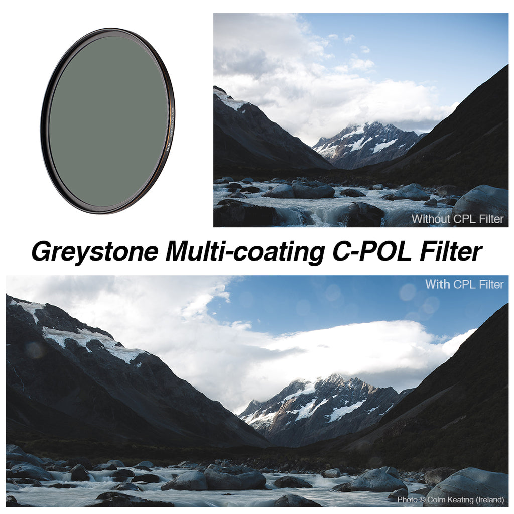 The Haida Greystone CPL (Circular Polarizer) Filter is designed to enhance image quality by reducing glare and reflections, while improving colour saturation and contrast. It is ideal for landscape, travel, and outdoor photography, delivering rich skies, defined clouds, and natural color tones.