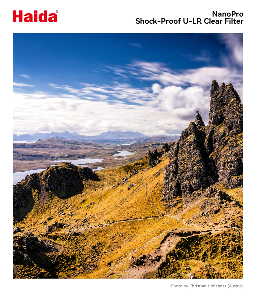The Haida NanoPro Shock-Proof U-LR Clear Filter delivers unmatched optical clarity and robust lens protection. Designed with tempered glass tested under extreme conditions, it provides superior impact resistance without compromising image quality. The ultra-low reflection coating dramatically cuts flare and ghosting, while B270 optical glass ensures 99.9% light transmission for brilliant, colour-accurate results. Its advanced 26-layer nano-coating protects against moisture, fingerprints, and dust, maintaining pristine performance even in demanding environments.