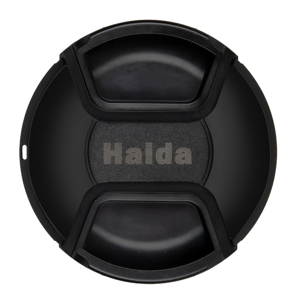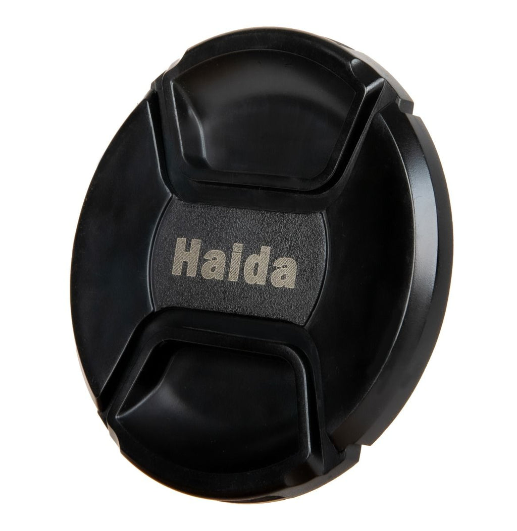 A front lens cap with a center pinch, spring, and snap-on mechanism. It is easy to put on and take off, and it stays on. Lens caps protect the front element of a lens from scratches, fingerprints, and the elements when the lens is not in use. It's always good to have a spare in your camera bag, too.