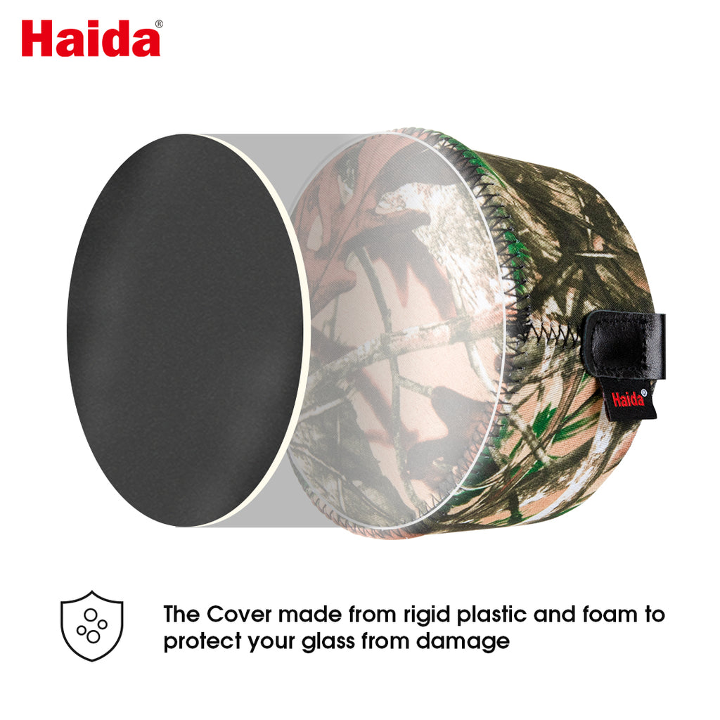 Haida Lens hood protection cover help protect your lens hood from dirt, dust, moisture and bumps. It is made from neoprene and provides a thermal barrier, and is easy to install or remove. The cover has a reinforced, removable, front lens element disc made from rigid plastic and foam to protect your glass from damage.