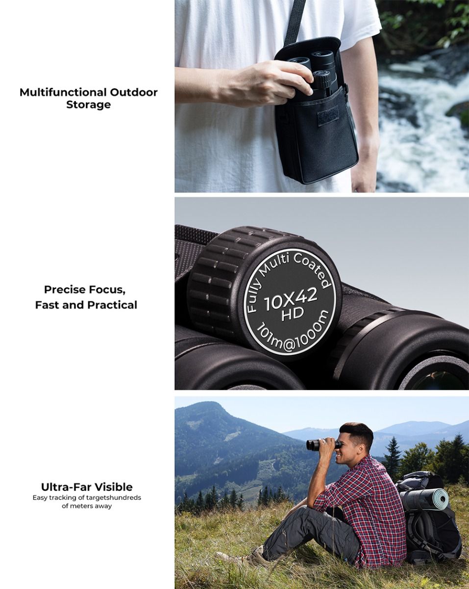 - 10X high-definition magnification binoculars, which can zoom in and zoom in on objects 10 times, and the 42mm large eyepiece objective lens provides more sufficient fill light and a larger field of view