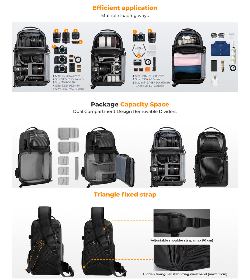 K&F CONCEPT 10L SLING CAMERA BAG (BLACK)