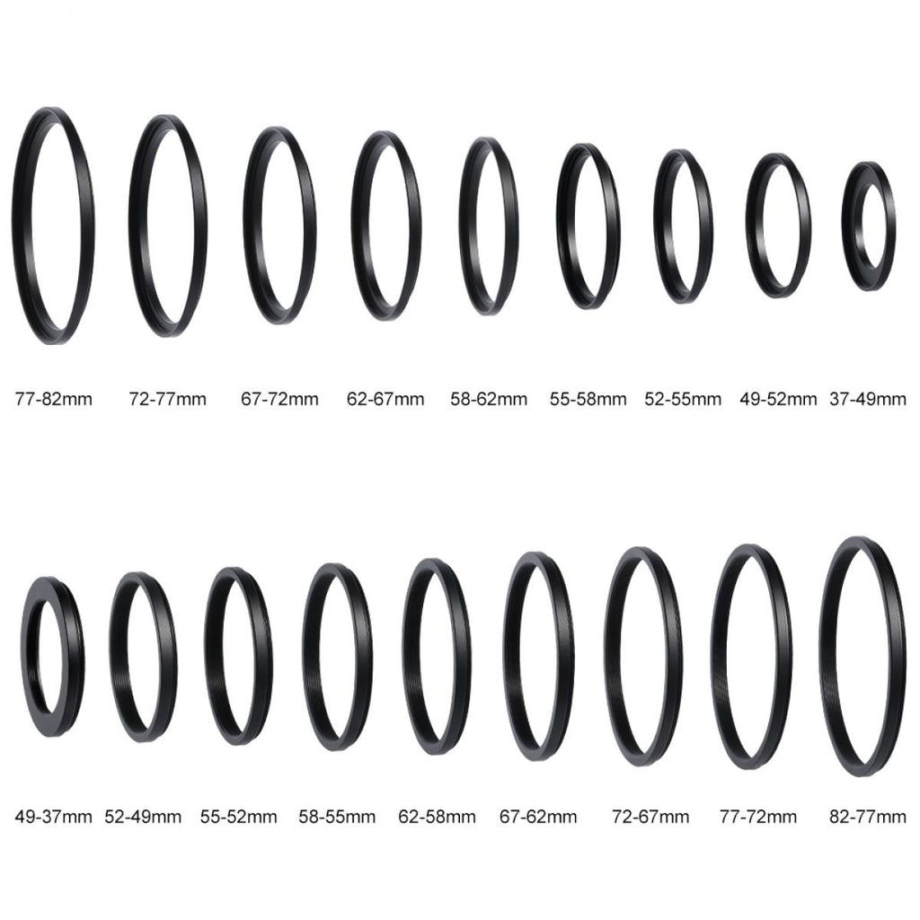 9x Step-down Rings (49-37, 52-49, 58-55, 55-52, 62-58, 67-62,72-67, 77-72, 82-77mm)