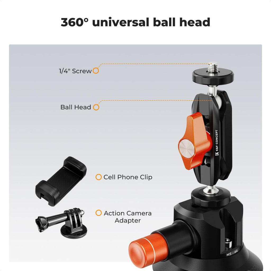 - 360° Adjustable Ball Head: Allows flexible shooting angles and smooth orientation changes.