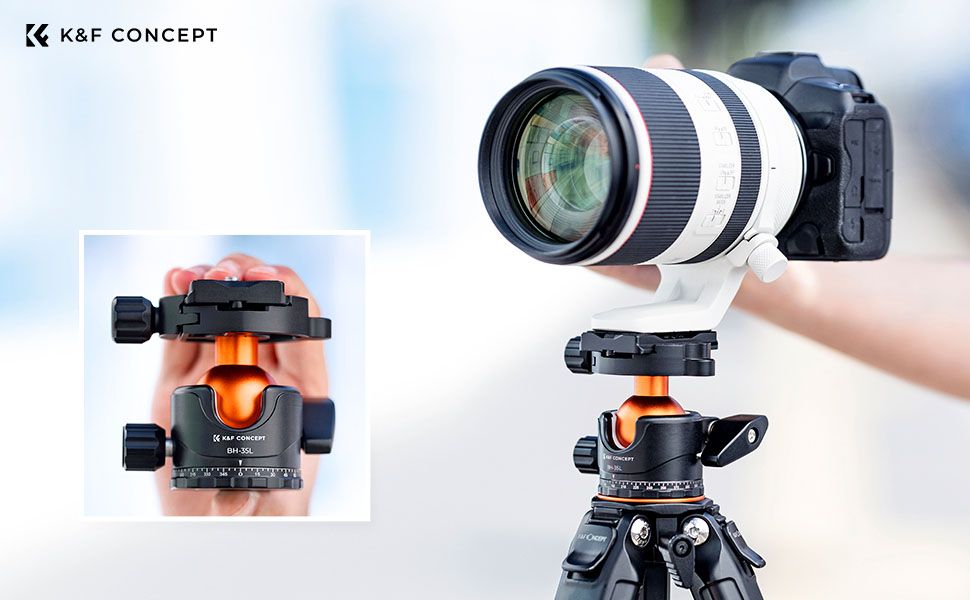 - Wide Compatibility - K&F Concept KF-35 series ball head uses 3/8" screw to connect tripods, while 1/4" screw for cameras, mobile phones mounts, VCR, ring light. It is compatible with mirrorless cameras with zoom lenses and DSLRs on the market.