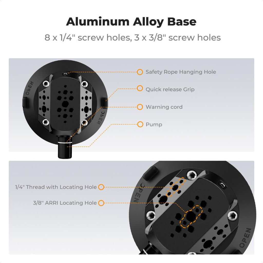 - Durable Base: Aluminum alloy base with 8× 1/4" screw holes and 3× 3/8" screw holes for expansion.