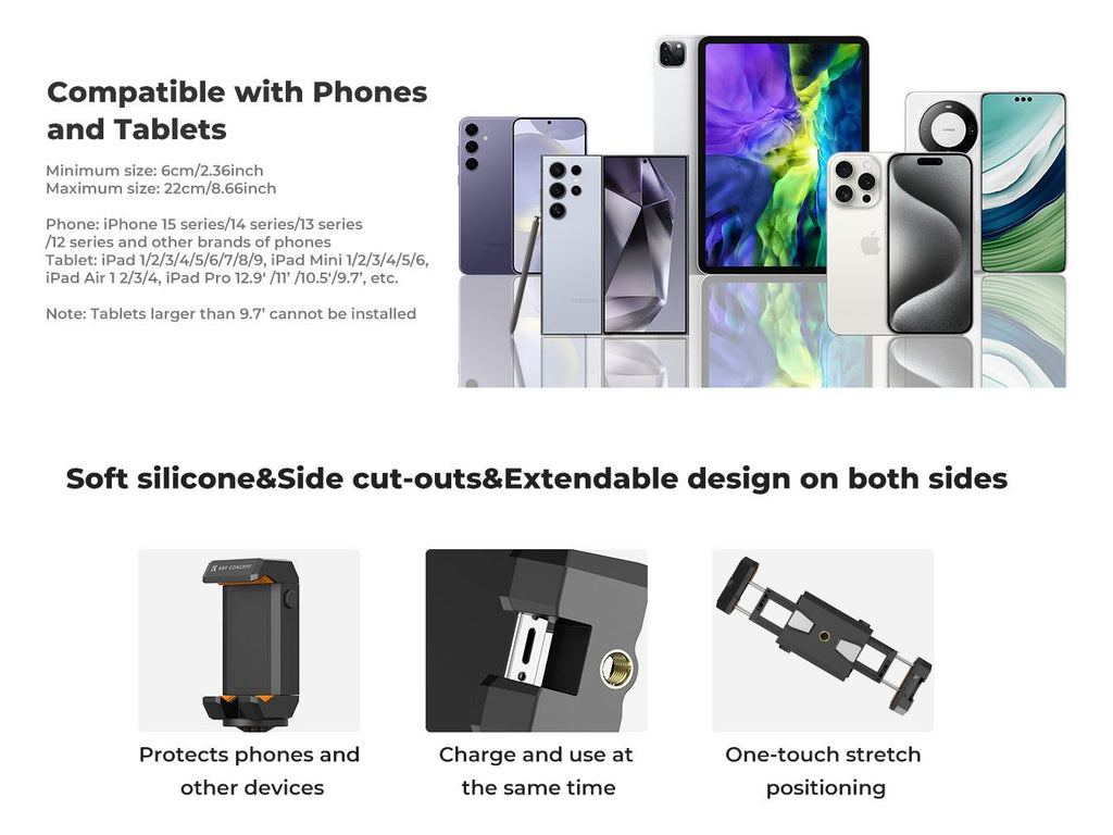 K&F CONCEPT 6-22CM WIDTH TABLET/PHONE HOLDER