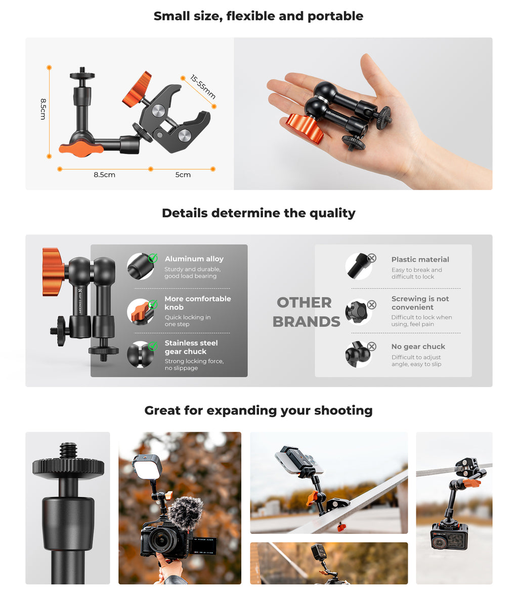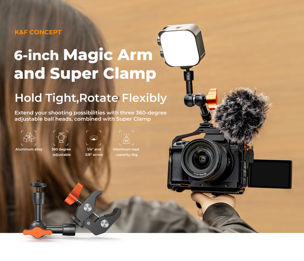 K&F CONCEPT 6" ADJUSTABLE MAGIC ARM WITH SUPER CLAMP