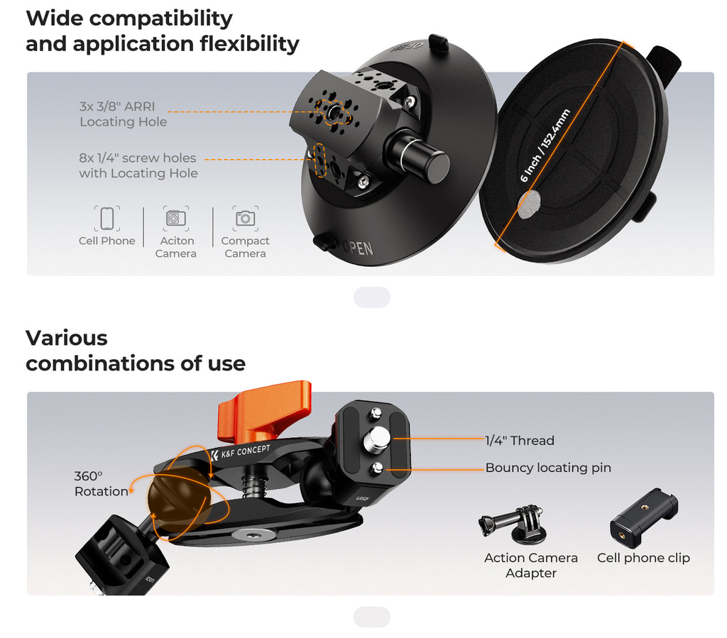 K&F CONCEPT 6" SUCTION CUP CAMERA MOUNT WITH MAGIC ARM