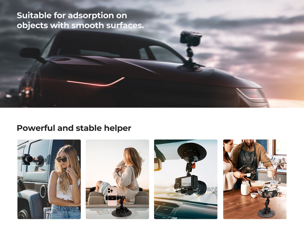 - Heavy Load Capacity: Horizontal suction up to 60kg and vertical suction up to 40kg, supporting heavy-duty cameras and equipment.