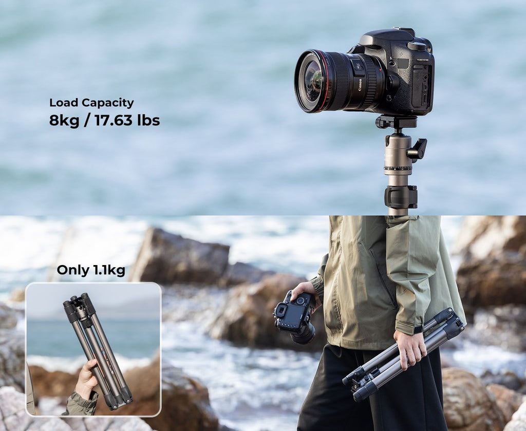 - Super Portable For Travel - The weight of this tripod is only 1.1kg/2.42 lbs, which greatly breaks the weight limit of the traditional tripod. it is perfect for outdoor travel photography.