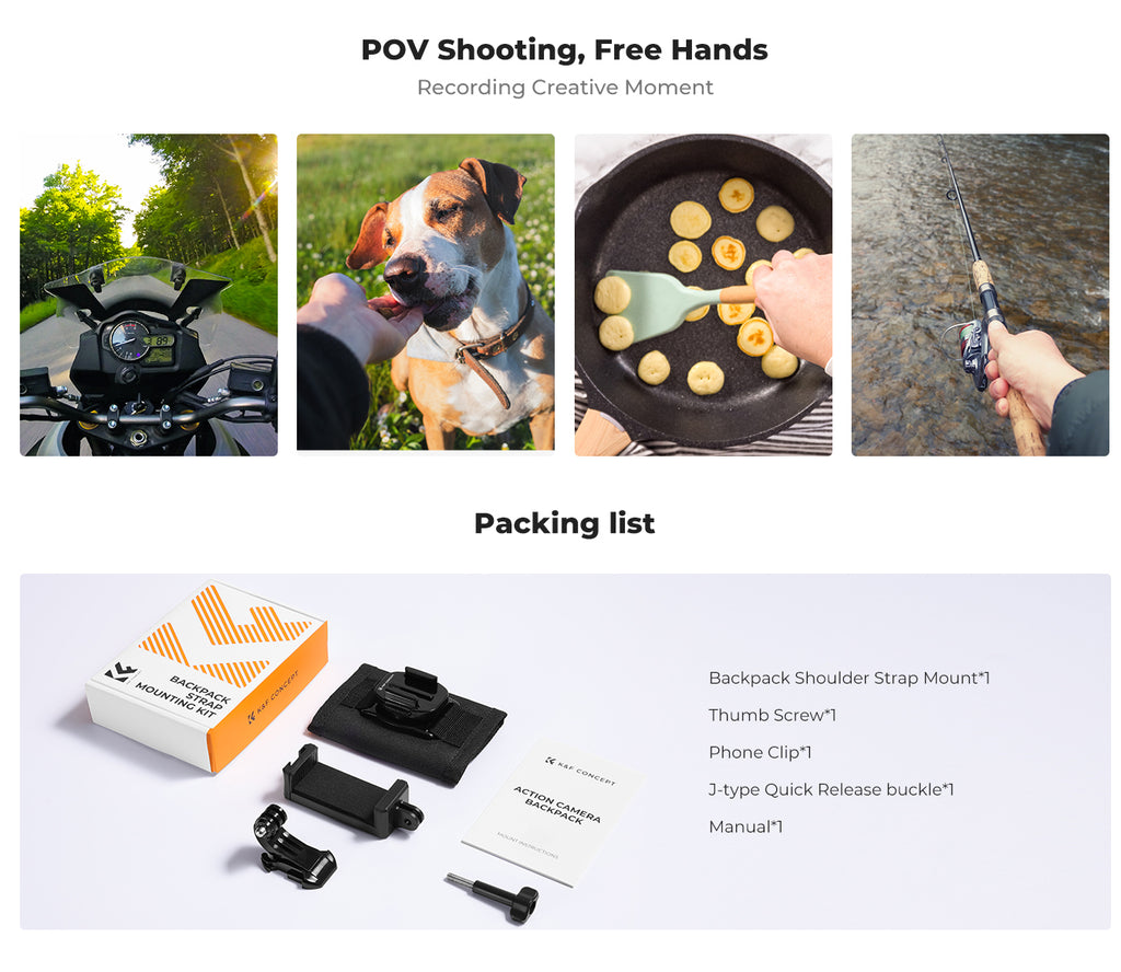 - Multi-purpose POV Mount: Ideal for first-person-view (POV) hands-free filming while biking, hiking, cooking, or fishing.