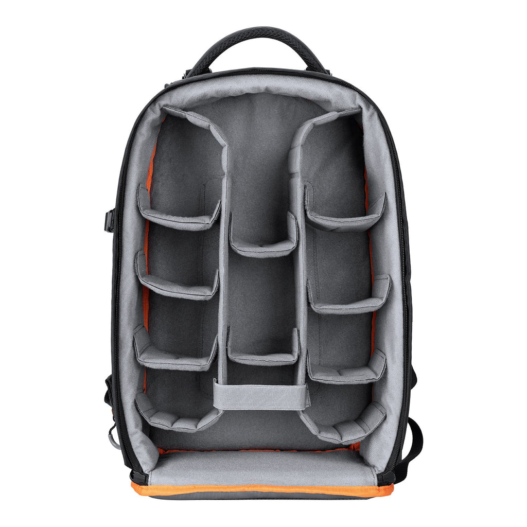 -Large adjustable interior holds two cameras, four lens, a tripod, a drone, a 15.6" laptop, and accessories