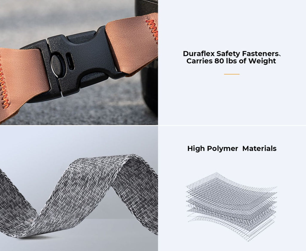 - Stable: Adopt Duraflex brand's Stealth buckle ,made of Nylon which is nearly unbreakable;Unique locking mechanism to protect your camera from accidental drops.