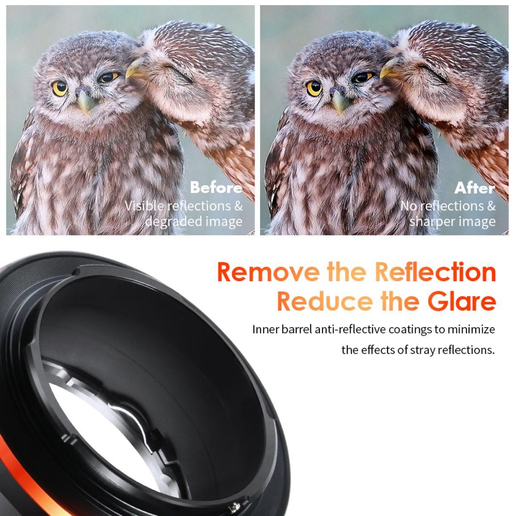 - High-precision perfect transfer, aluminum-magnesium alloy ring body, fine copper bayonet will not wear the lens, the workmanship is very exquisite, tight and smooth combination with the bayonet, adjustable and focusable, the lens macro function can be played, and can be infinite Focus.