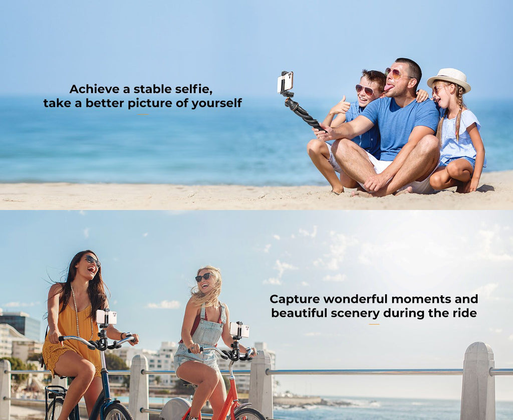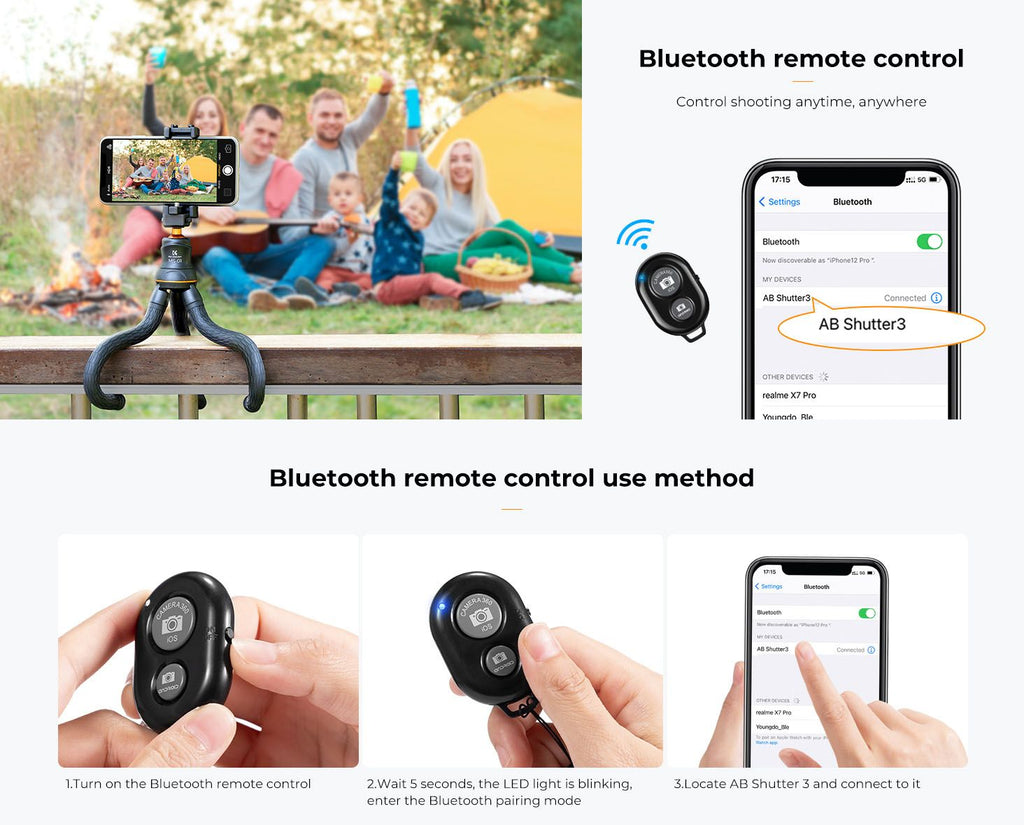 - 2-in-1 design cell phone clip design, easily compatible with mobile phones and cameras, allowing you to capture wonderful moments anytime, anywhere. Complimentary Bluetooth remote control, which can be quickly paired without a password, supports taking photos or recording videos freely within 10 meters, and can work continuously for 10 hours