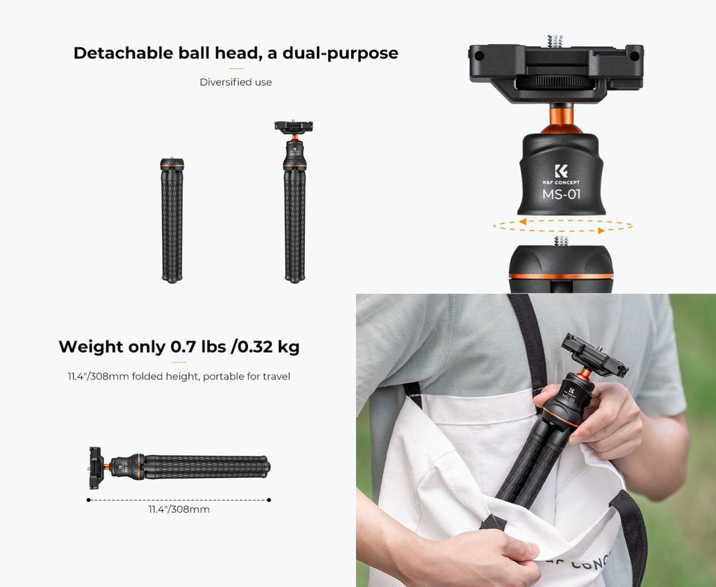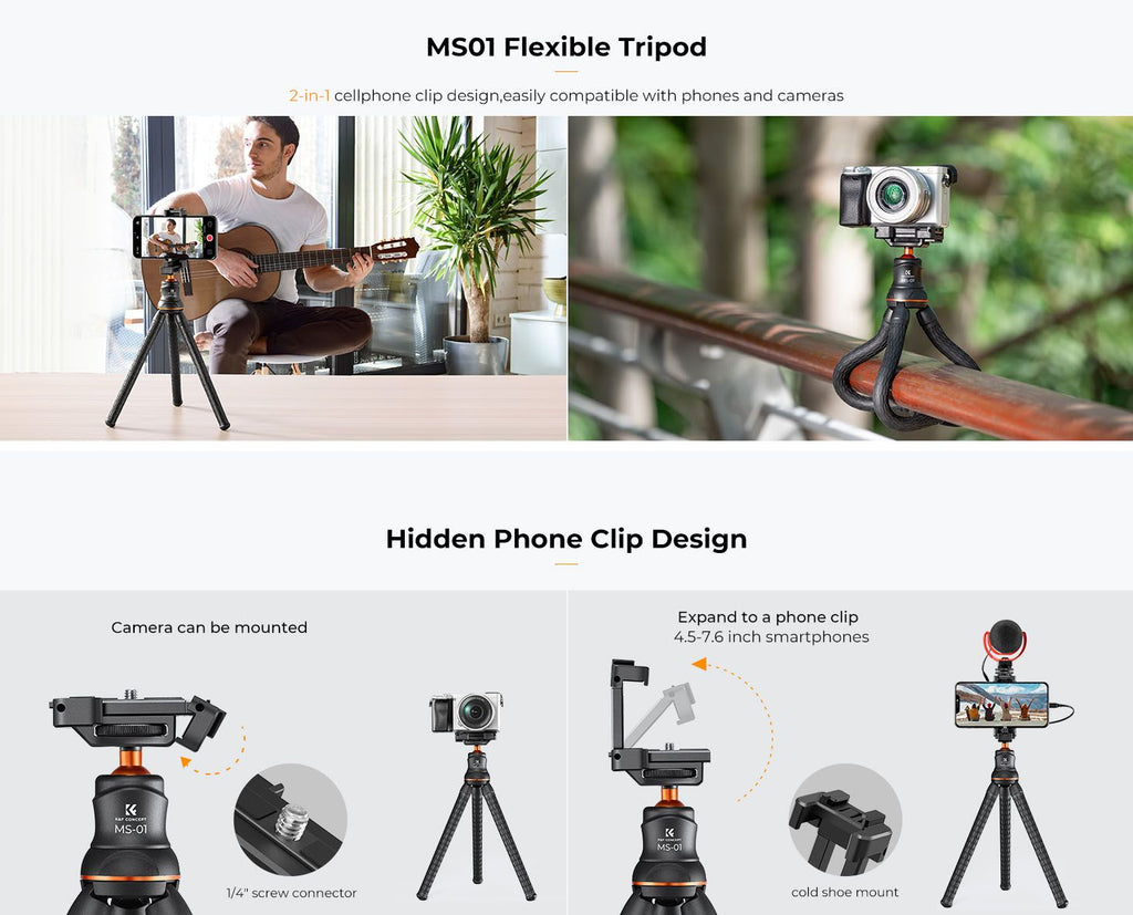 K&F CONCEPT MS-01 VERSATILE MINI FLEXIBLE TRIPOD