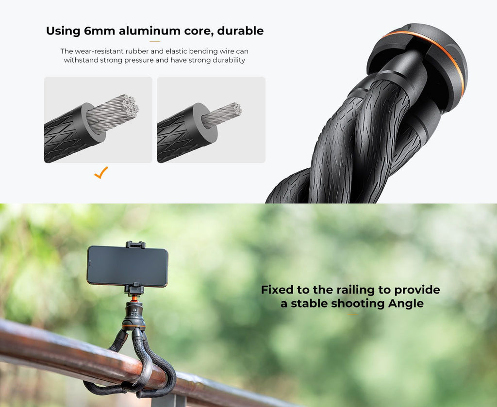 - The tripod is made of special materials, which is tough and durable, flexible and stronger at the same time. It is not easy to break after repeated bending. It is equipped with a good silicone pad on the lower part and has better anti-slip performance. The product is waterproof and anti-corrosion. Can be photographed in the sea