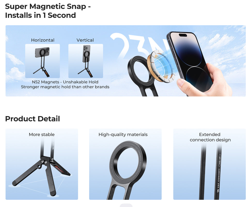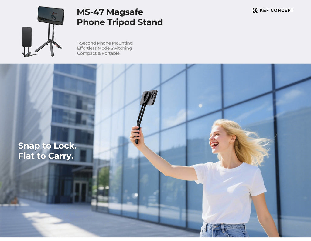 K&F CONCEPT MS-47 MAGNETIC ALLUMINUM ALLOY PHONE TRIPOD STAND