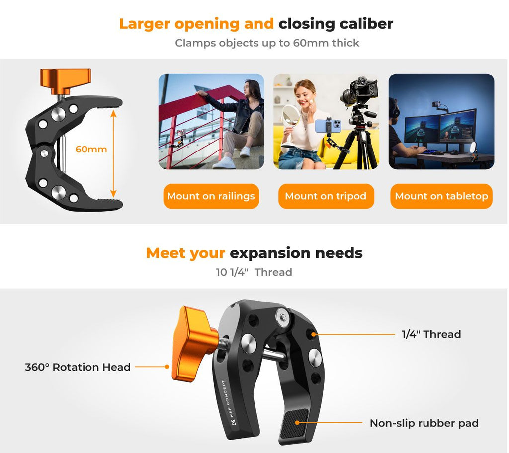 K&F CONCEPT SUPER CLAMP WITH 60MM OPENING DESIGN MS15