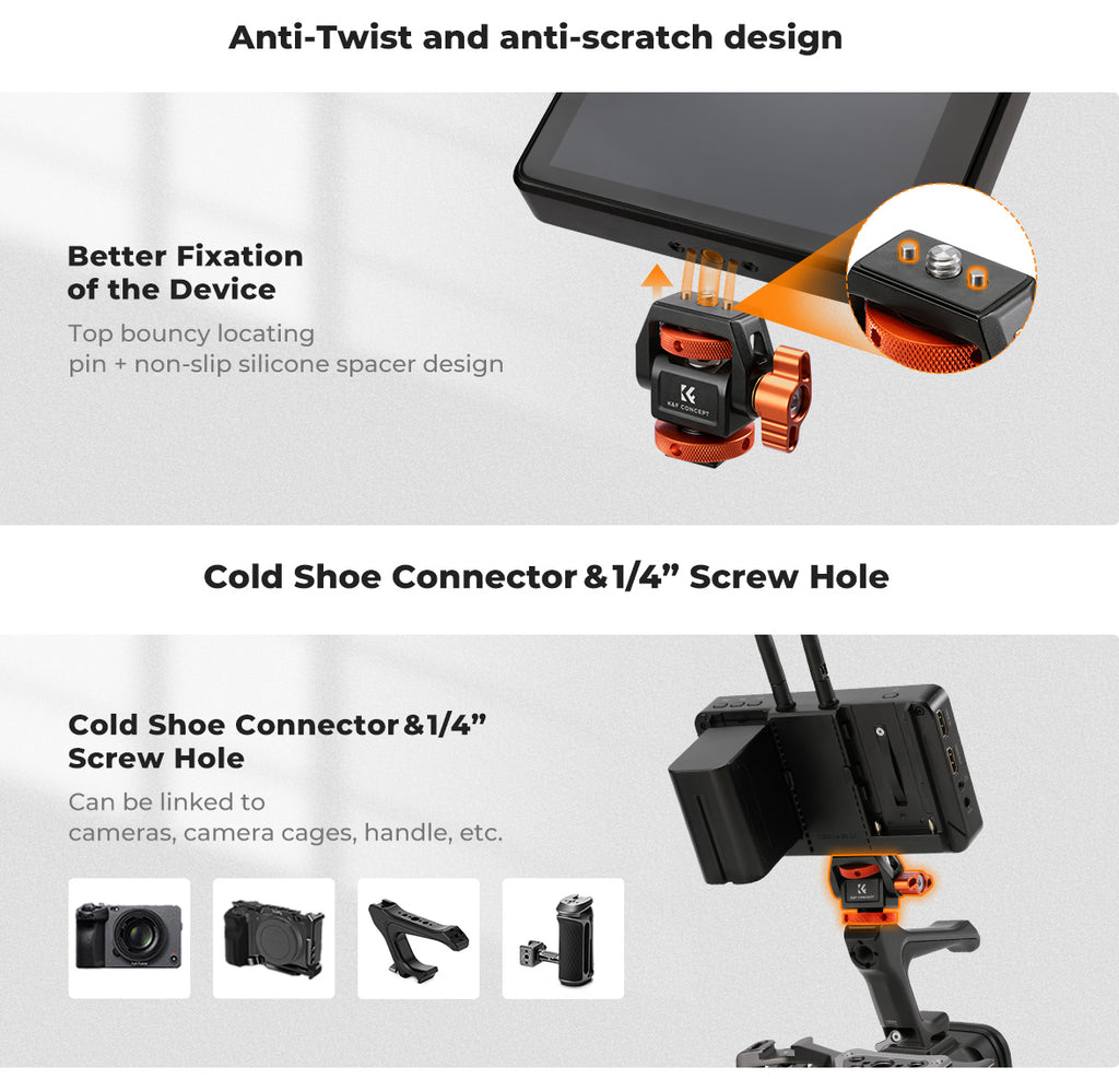 K&F CONCEPT SWIVEL & TILT FIELD MONITOR MOUNT WITH COLD SHOE ADAPTER