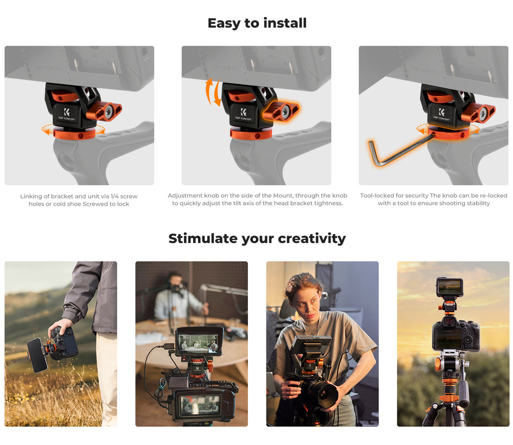 - Wide Angle Range: Supports 180° tilt and 360° horizontal rotation for precise angle adjustment in various shooting scenarios—ideal for field monitors, lights, and smartphones.