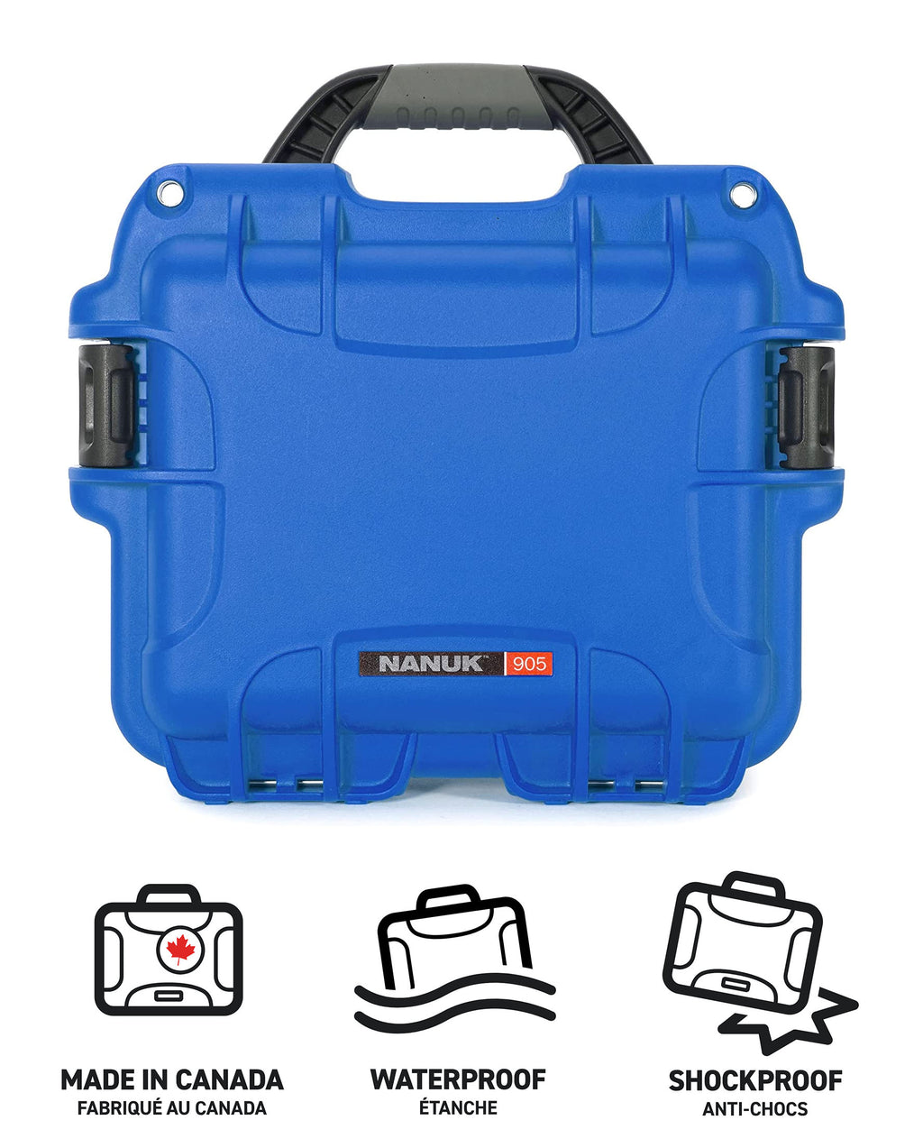 With NANUK’s exclusive locking and latching system, your case stays shut and secuBlue until you are ready to open it. Waterproof, dustproof, and indestructible, the NANUK 905 is ideal for batteries, lenses, smartphones, flash drives, hard drives, cameras, microphone systems, pistols, fishing gear, binoculars, scopes, tools or any other smaller personal or professional equipment that might need superior protection.