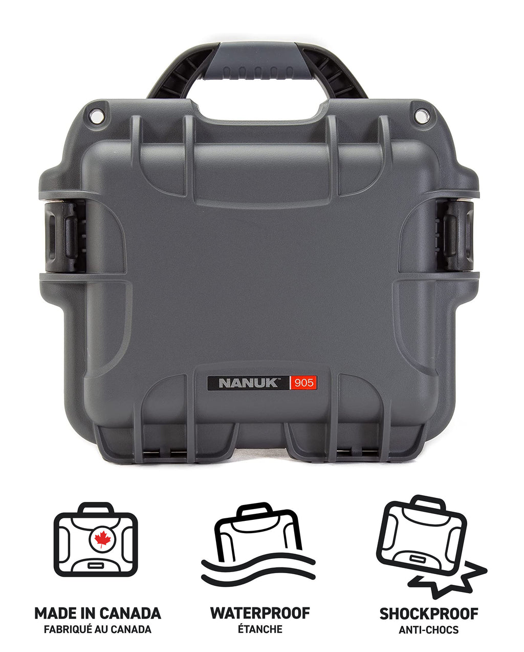 With NANUK’s exclusive locking and latching system, your case stays shut and secuGraphite until you are ready to open it. Waterproof, dustproof, and indestructible, the NANUK 905 is ideal for batteries, lenses, smartphones, flash drives, hard drives, cameras, microphone systems, pistols, fishing gear, binoculars, scopes, tools or any other smaller personal or professional equipment that might need superior protection.