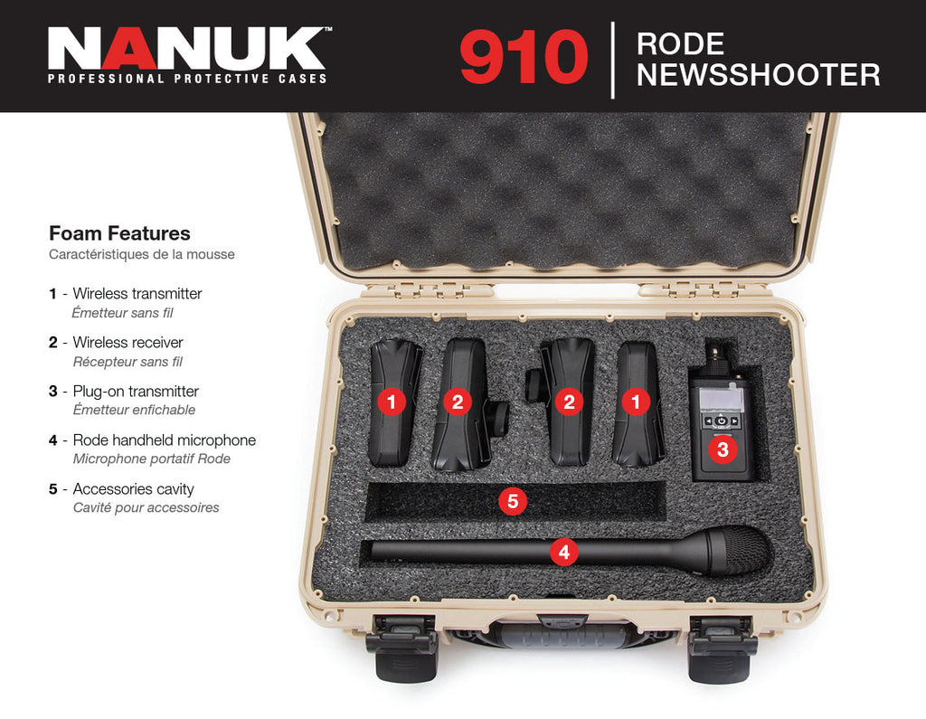 This medium case comes with custom-cut and high-quality closed cell foam for your Rode™ Newsshooter™ kit. It offers compartmentalized protection specifically for a handheld microphone, a plug-on transmitter, two (2) wireless receivers, two (2) wireless transmitters and other accessories. Professionals and enthusiasts around the world trust NANUK to protect their most valuable gear, no matter what the conditions.