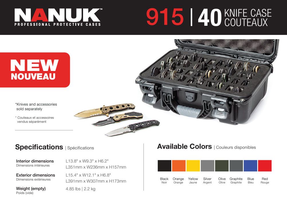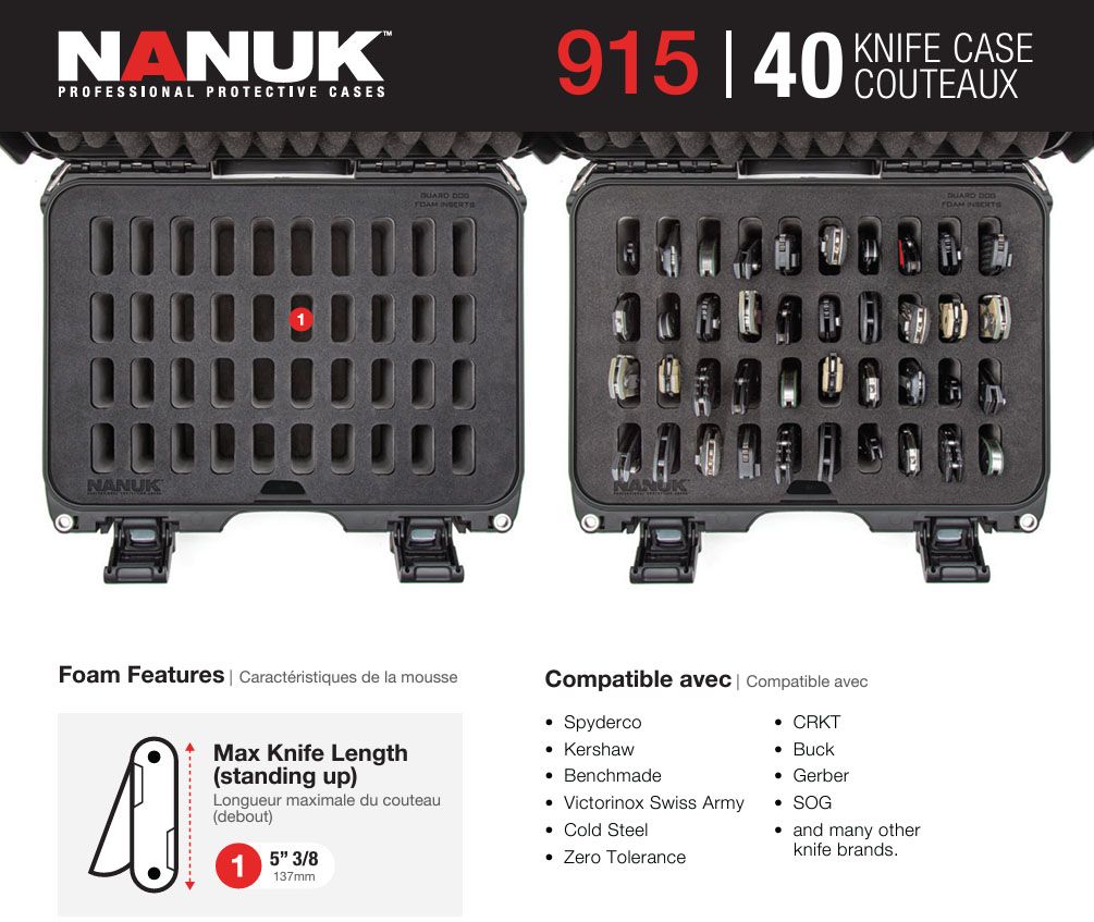 Designed to hold 40 single-blade folding knives, the NANUK 915 40-Knife Case is indestructible and built to protect and secure your collection.