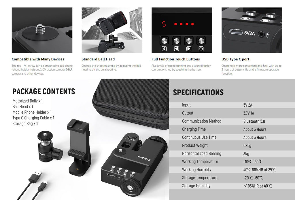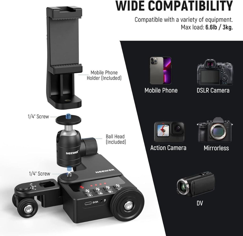 NEEWER DL200 MOTORIZED DOLLY WITH BALL HEAD AND PHONE CLIP