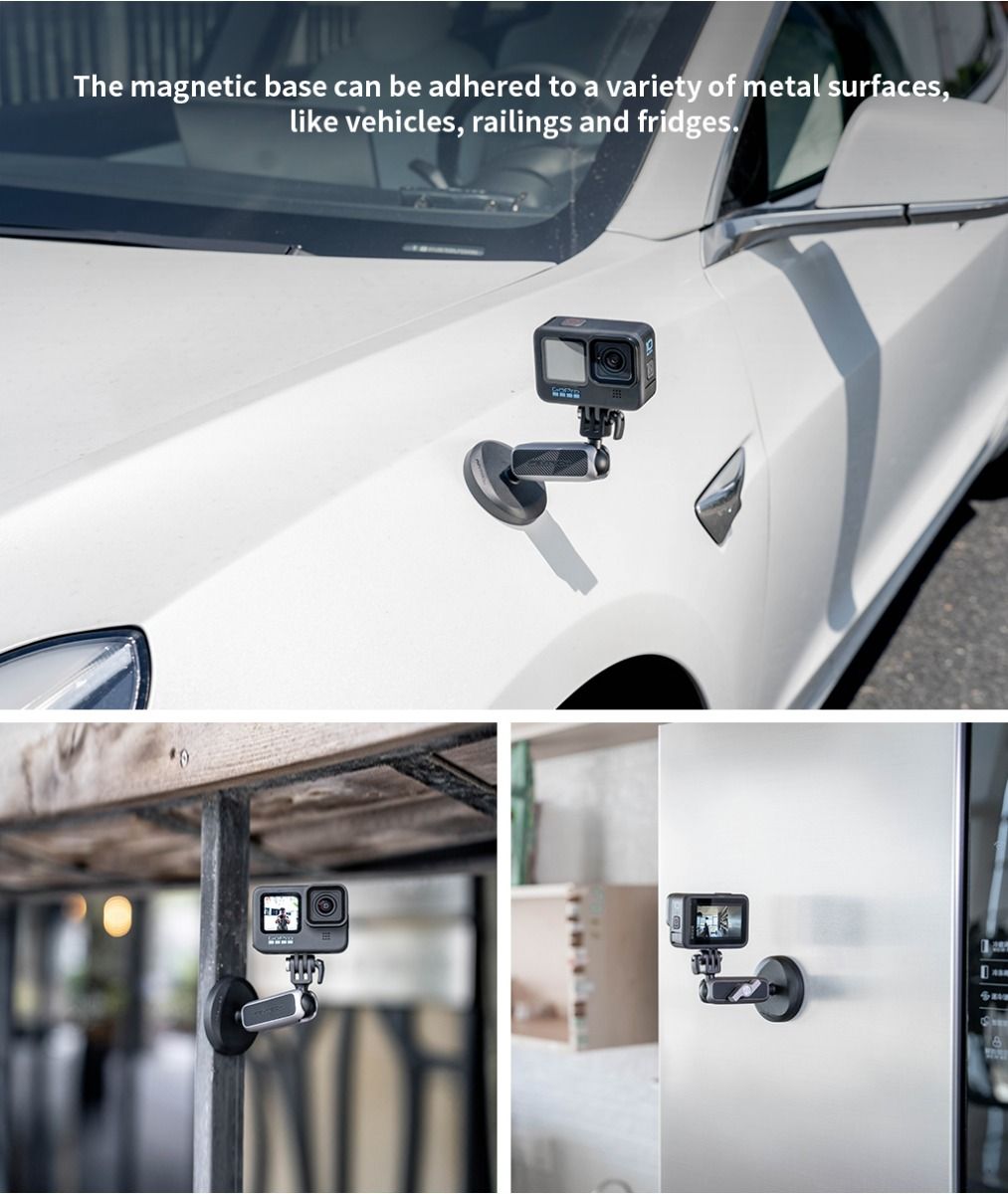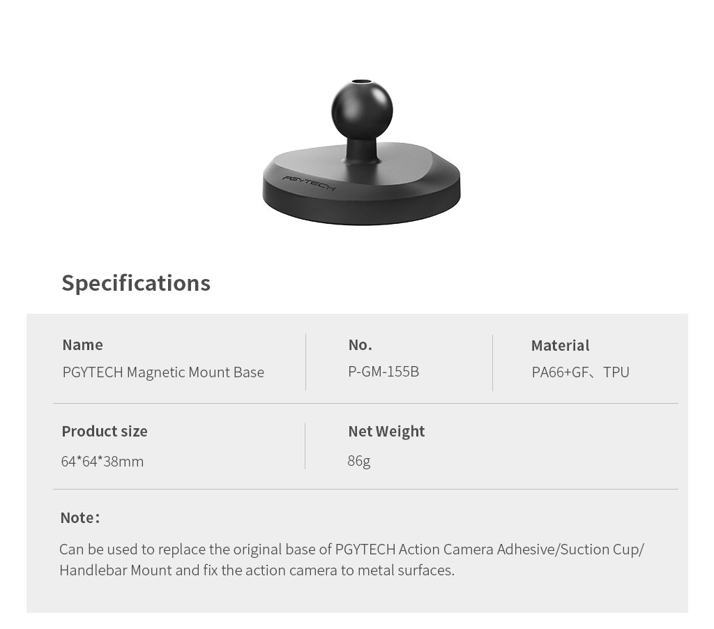 Can be used to replace the original base of PGYTECH Action Camera Adhesive/Suction Cup/Handlebar Mount and fix the action camera to metal surfaces.