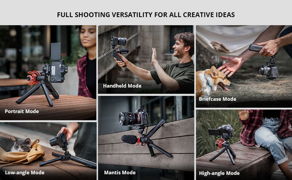 - Enable instant switch between tripod and handheld, landscape/portrait view switch and flexible tilt adjustment;