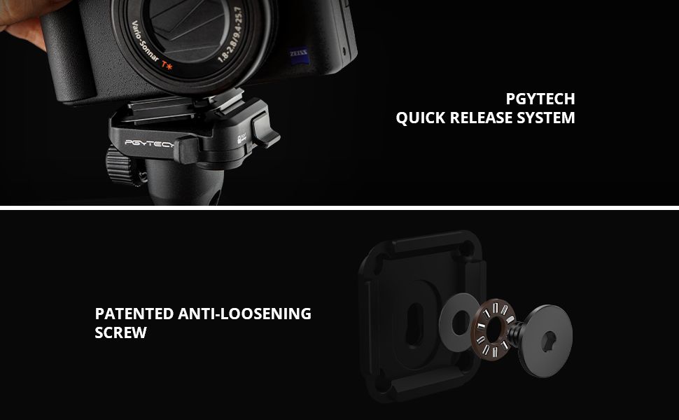 - PGYTECH Quick Release System is Arca-Swiss compatible and clamps/locks in only one easy step;