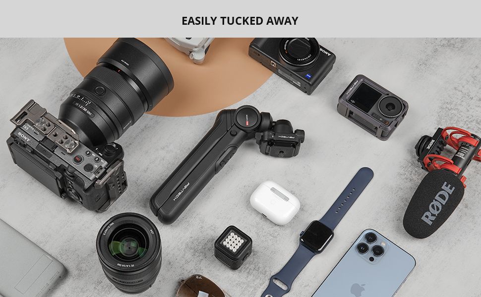A Mini smartphone holder can be purchased separately and housed in the tripod leg for enhanced compactness and functionality; And the rotatable cold shoe on the side allows photographers to enhance their creativity by adding accessories like lights or microphones.