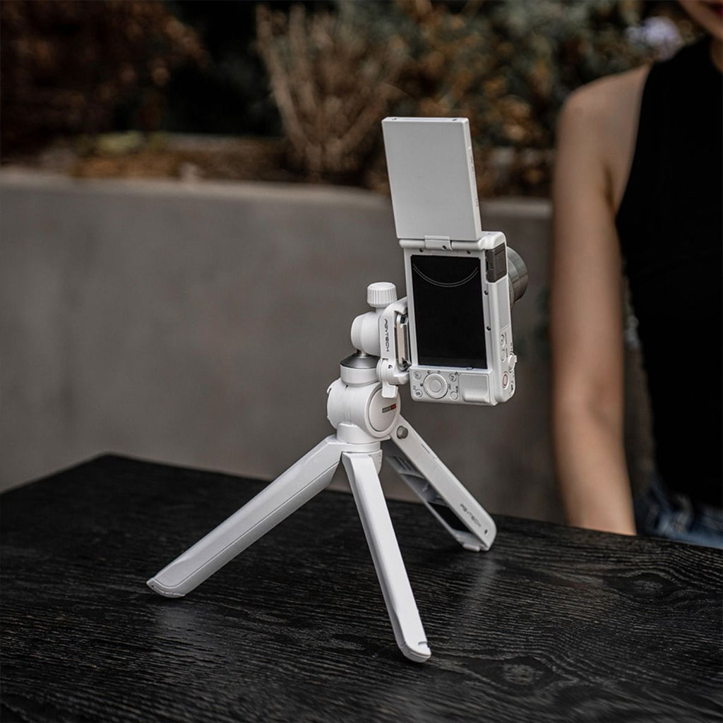 A Mini smartphone holder can be purchased separately and housed in the tripod leg for enhanced compactness and functionality; And the rotatable cold shoe on the side allows photographers to enhance their creativity by adding accessories like lights or microphones.