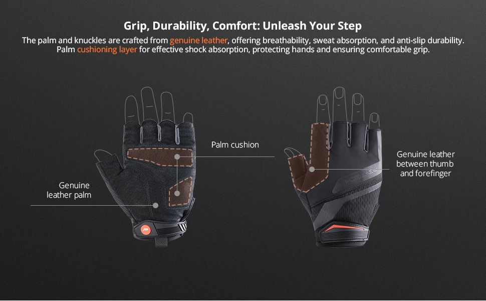 - Palms and knuckles crafted from genuine leather for a non-slip, durable grip.