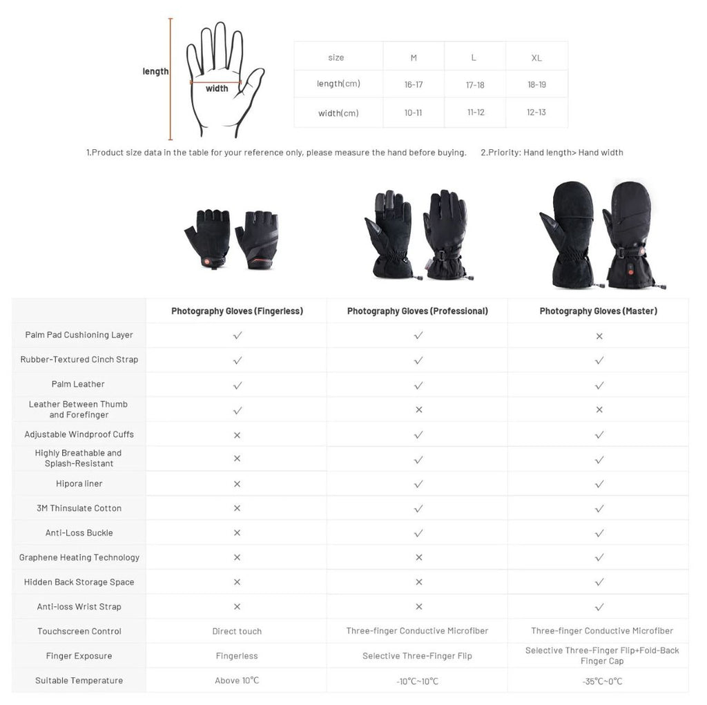 PGYTECH PHOTOGRAPHY GLOVES (FINGERLESS) XL