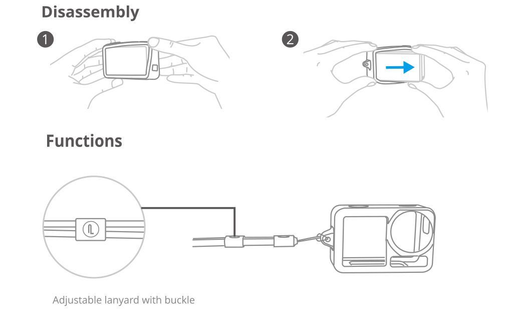 The silicone rubber case offers a seamless protection for your gear. Configured with lens cover, the rubber case offers reliable protection for your Osmo Action 3. Also, adjustable lanyard enhances its portability. The rubber case is made of high-quality silica gel and can effectively reduce damage. A thin layer of tactile oil is sprayed on the surface of the case, which can prevent dust and ensure the tactile feel.