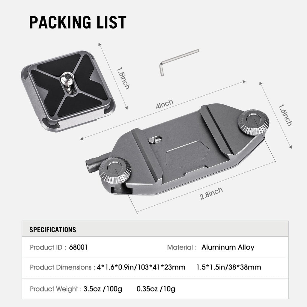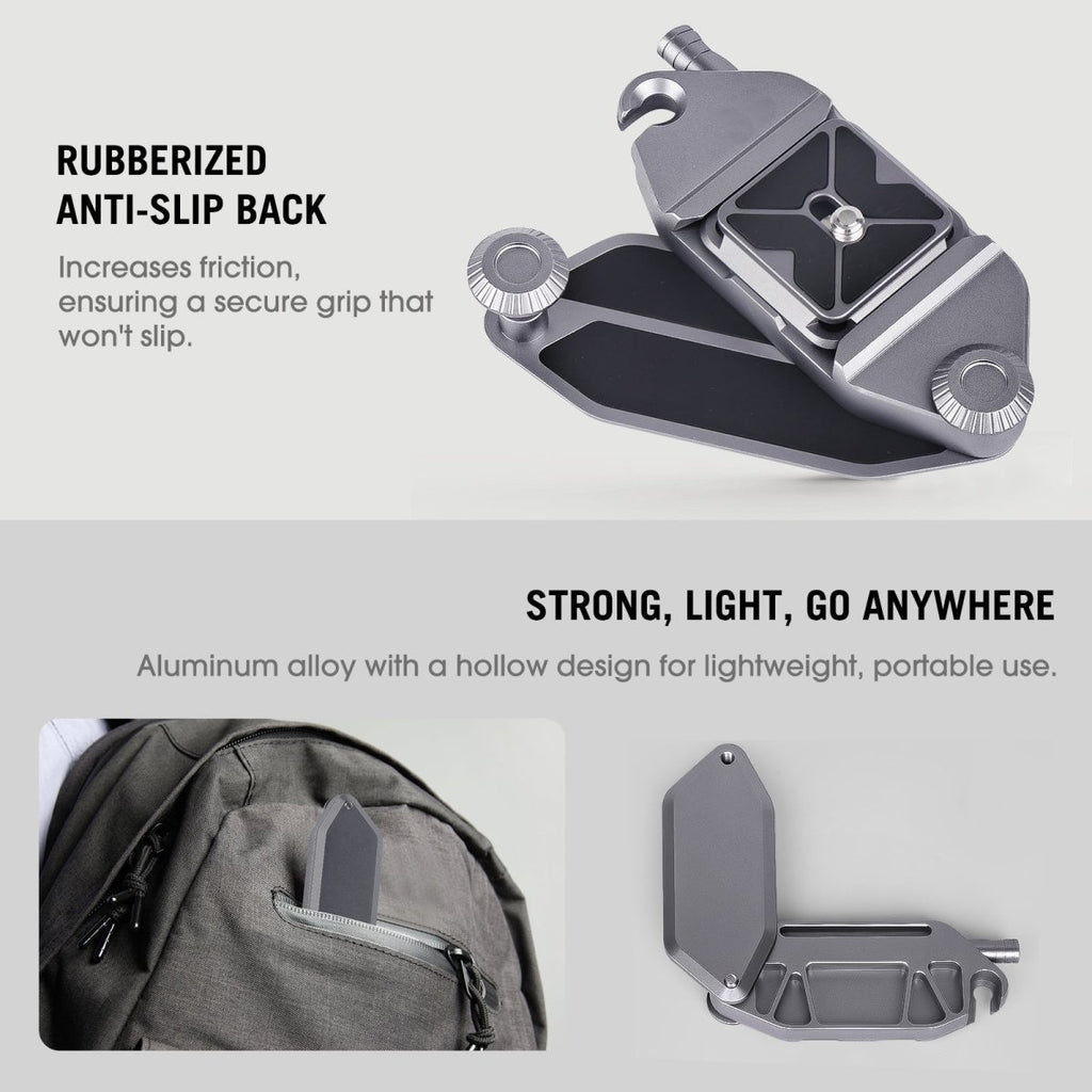 The back plate is specially designed with a rubber anti-slip pad to increase friction, ensuring the camera or equipment stays securely locked in the quick release system, preventing instability during use.