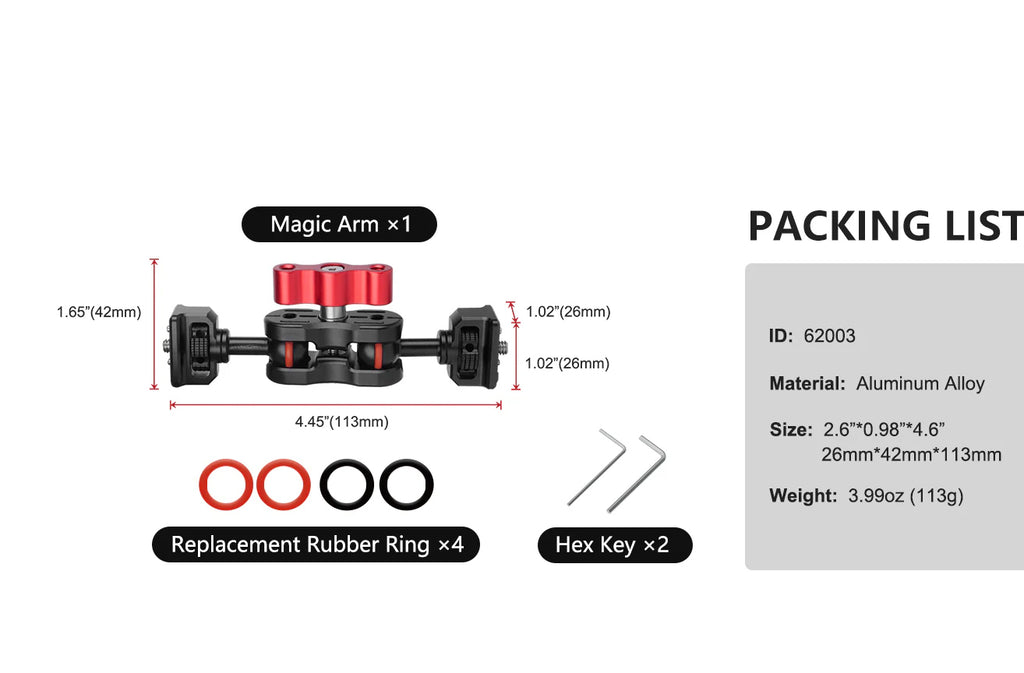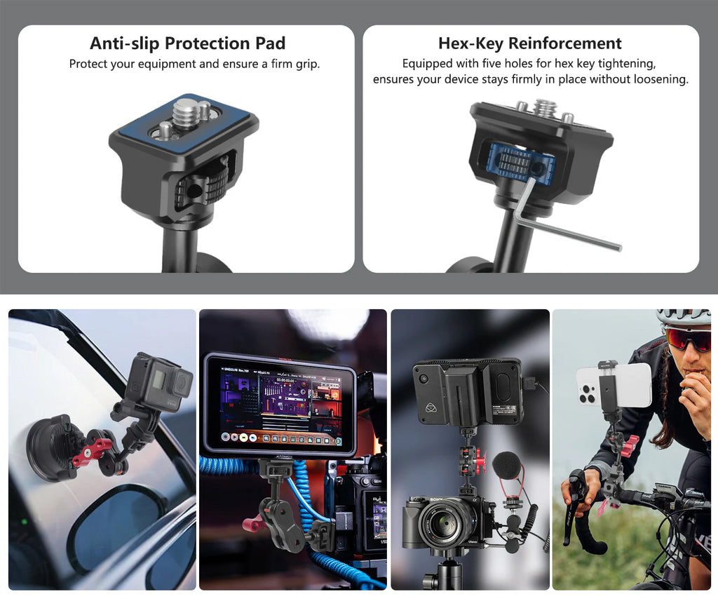 - Anti-Slip Rubber Pads for Enhanced Stability: The magic arm is equipped with anti-slip rubber pads that not only prevent scratches when in contact with your equipment but also improve stability, ensuring your equipment stays securely in place during the shooting process and reducing the risk of sliding or shaking.