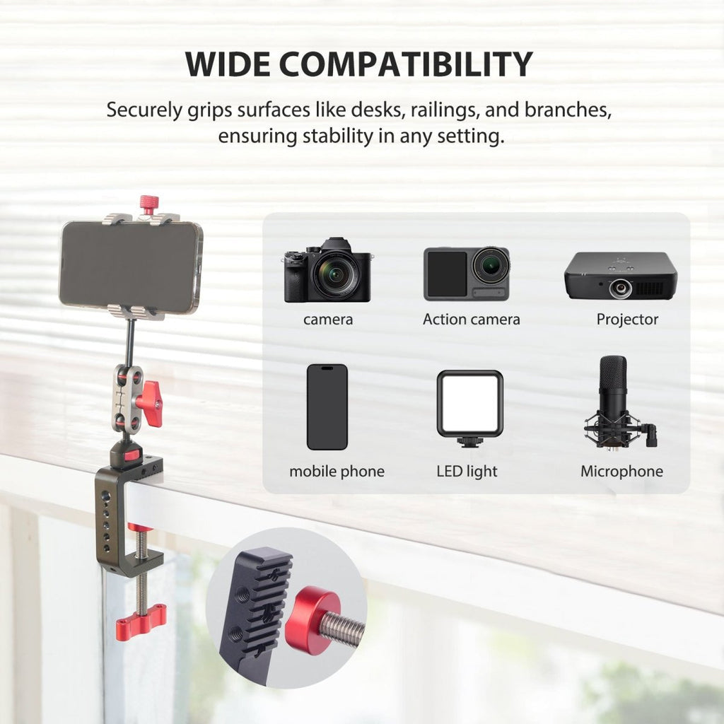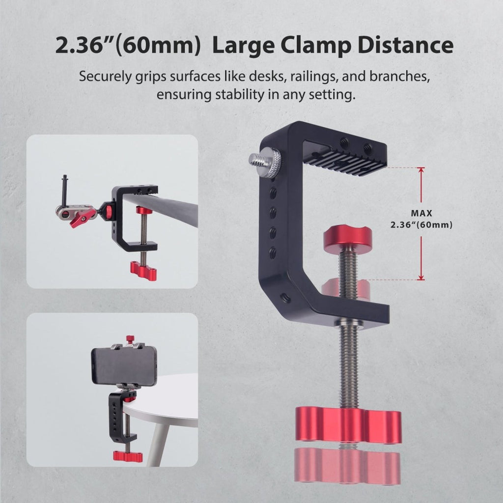 The 62mm(2.44 inches) wide opening allows this clamp to easily secure a variety of objects. Whether it’s a tabletop, railing, or tree branch, it can hold them firmly, greatly enhancing its versatility.