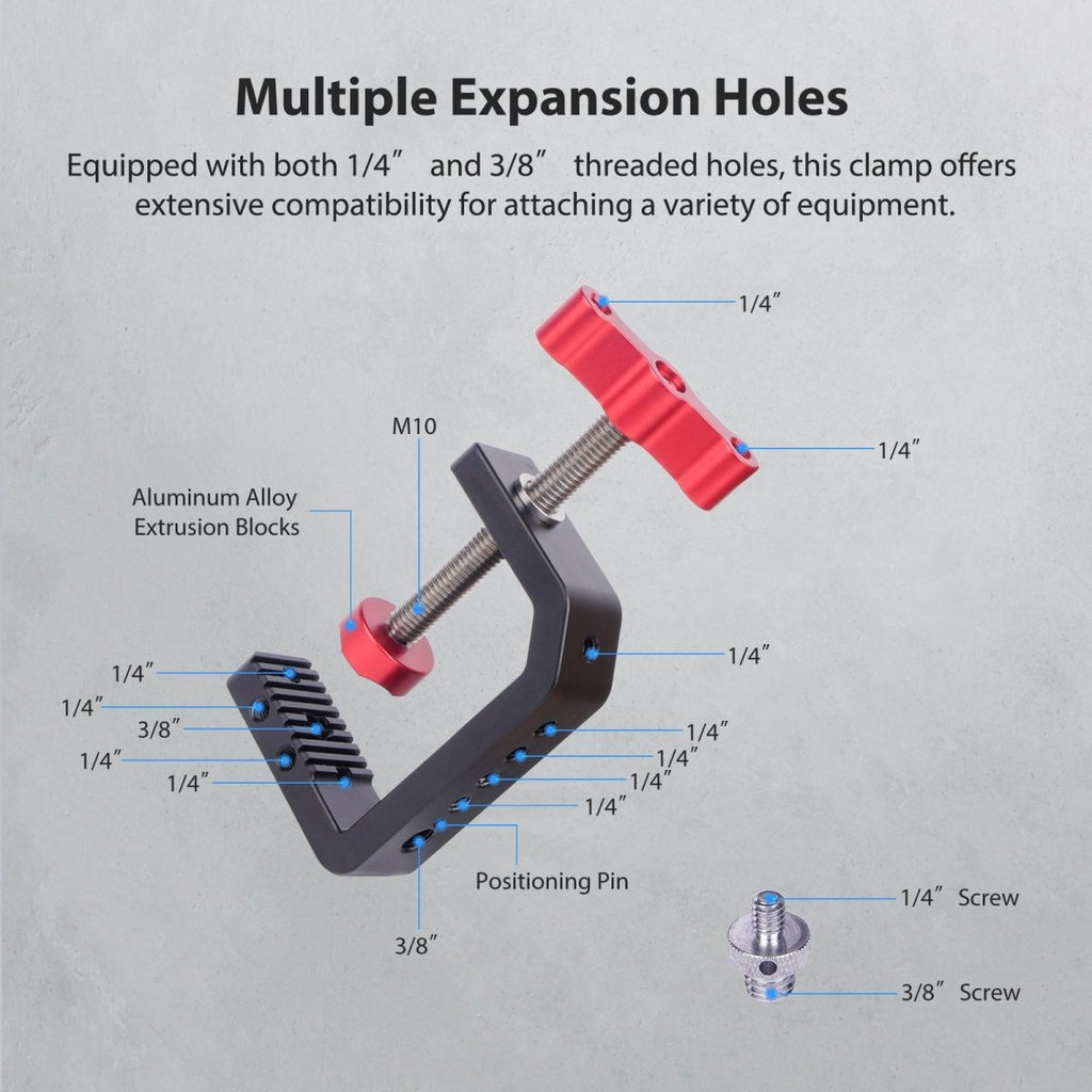 Multiple 1/4 and 3/8 expansion holes are pre-drilled, supporting compatibility with accessories like magic arms, ball heads, and gimbals. This allows for more flexible applications and expands your possibilities.