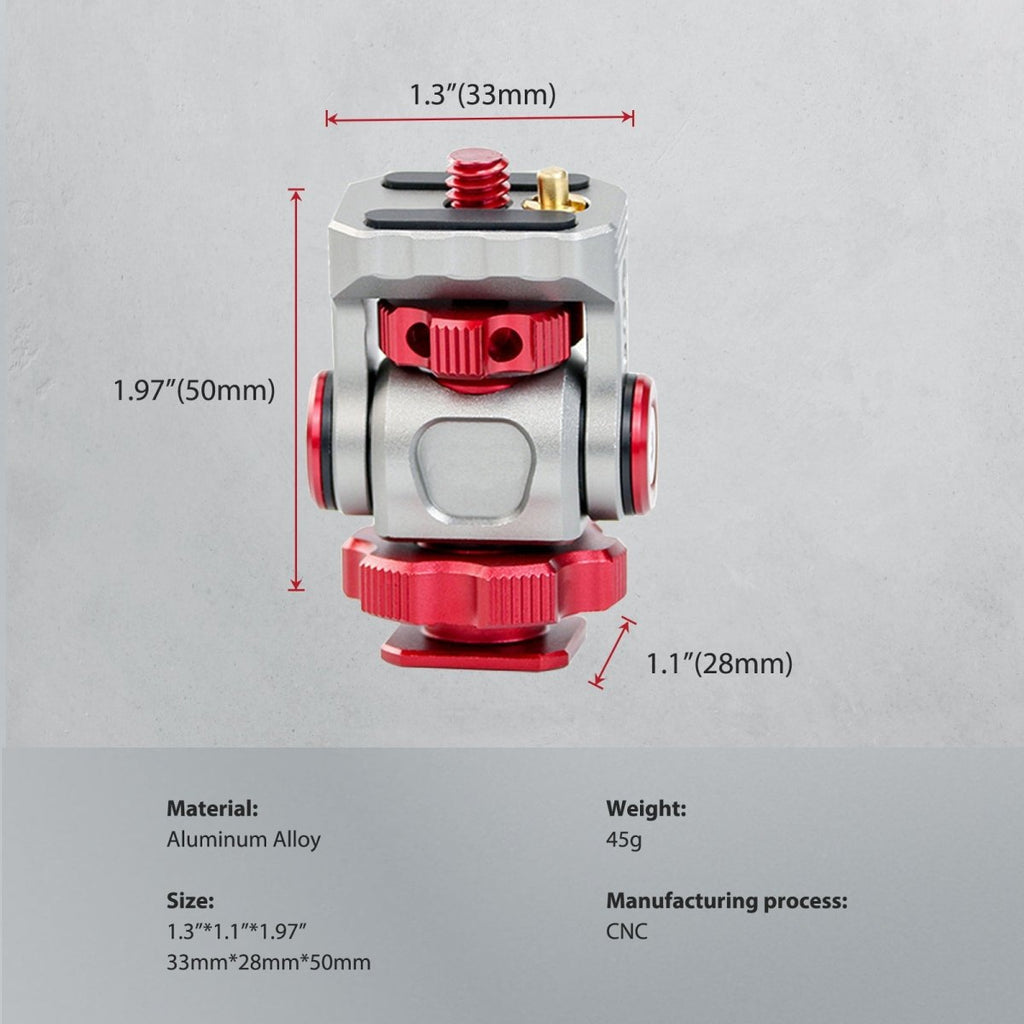 - Compact Design for Easy Portability: The compact and lightweight design makes this ball head an ideal companion for your photography gear. Not only is it functional, but it is also easy to carry and doesn't take up much space, allowing for convenient use anytime, anywhere.